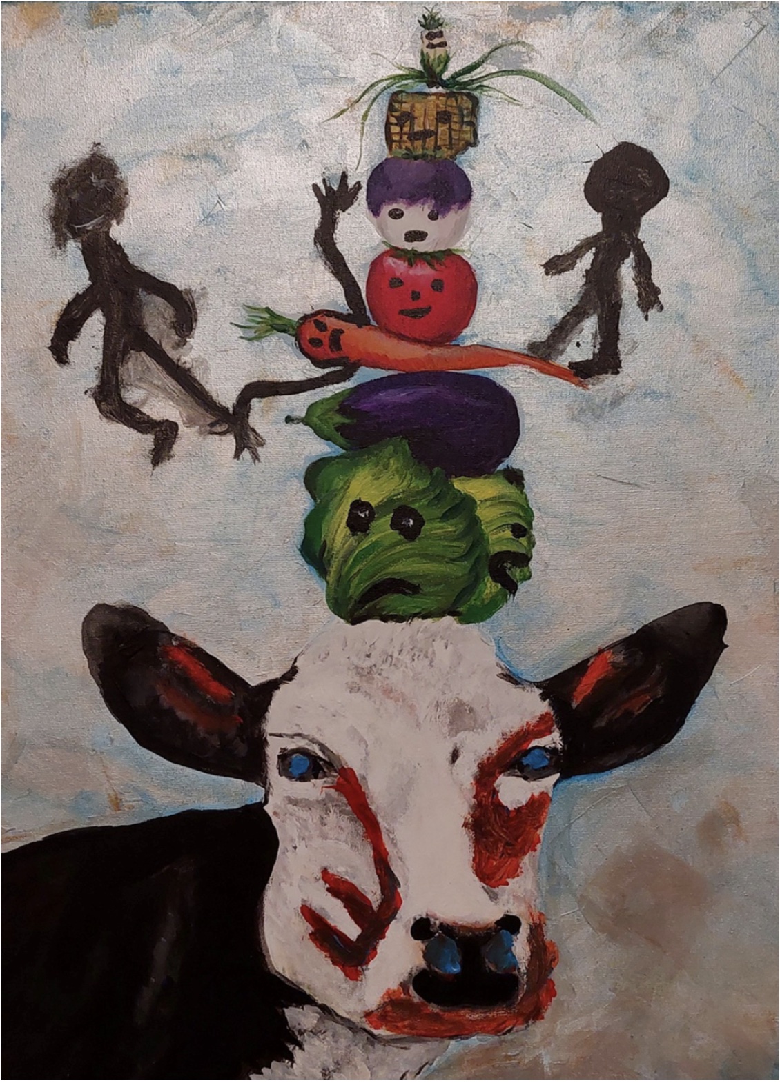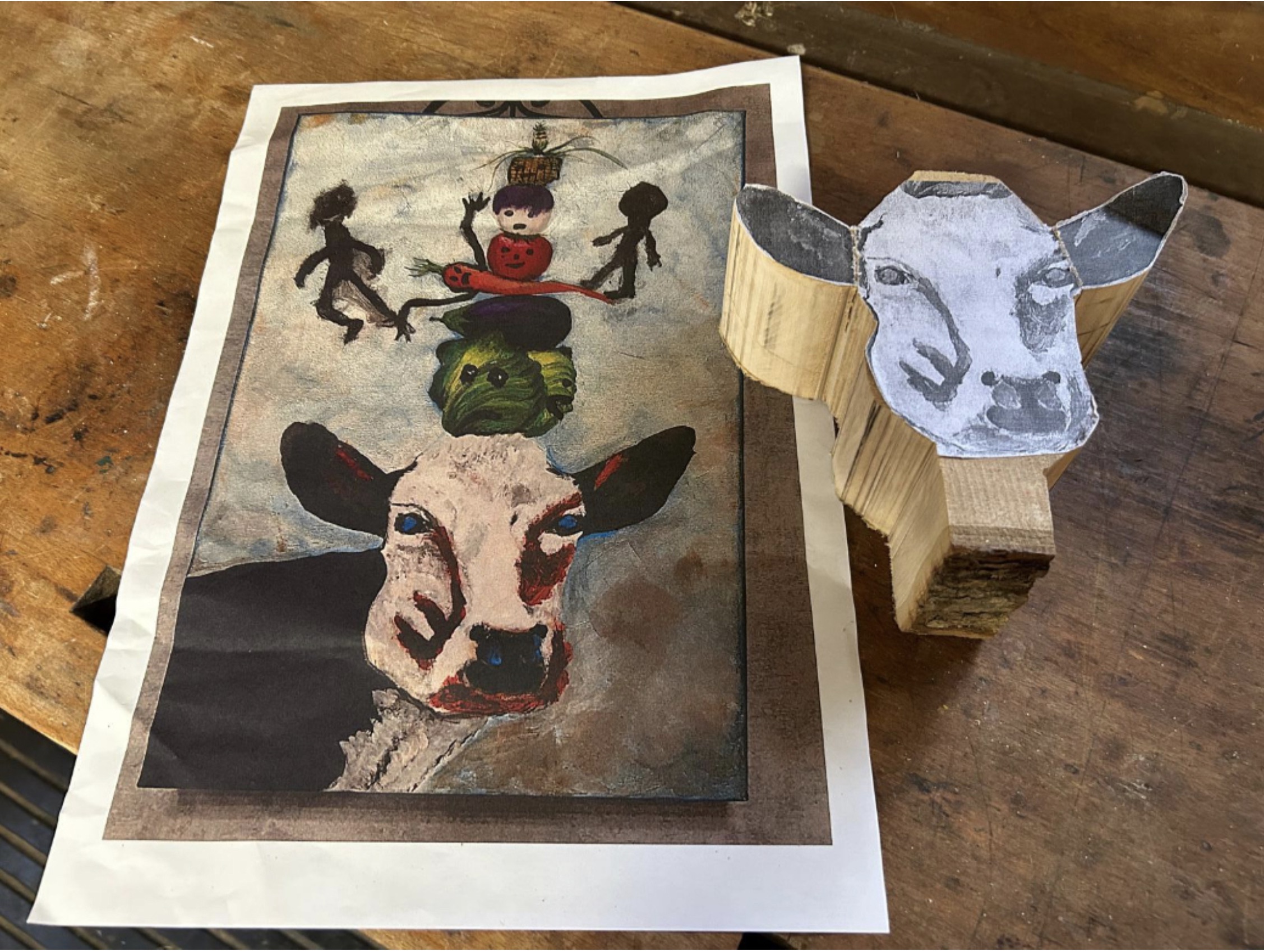 Jürgen Heitbreder: "Das Berufskolleg Bocholt-West hat es sich in seiner aktuellen Projektarbeit zum Ziel gesetzt, eigene Bühnenbilder und Puppen nach Vorlagen verschiedener Künstler zu gestalten. Darüber hinaus werden die von den Schülerinnen und Schülern gefertigten Figuren in einen thematischen Zusammenhang gebracht: die Kuh Alma aus dem Münsterland entdeckt die Welt. Am Ende der Projektarbeit sollen in einer Vorführung die eigenständig gebauten Puppen vor einem selbst zusammengestellten Hintergrund in Form eines Puppentheaters präsentiert werden."